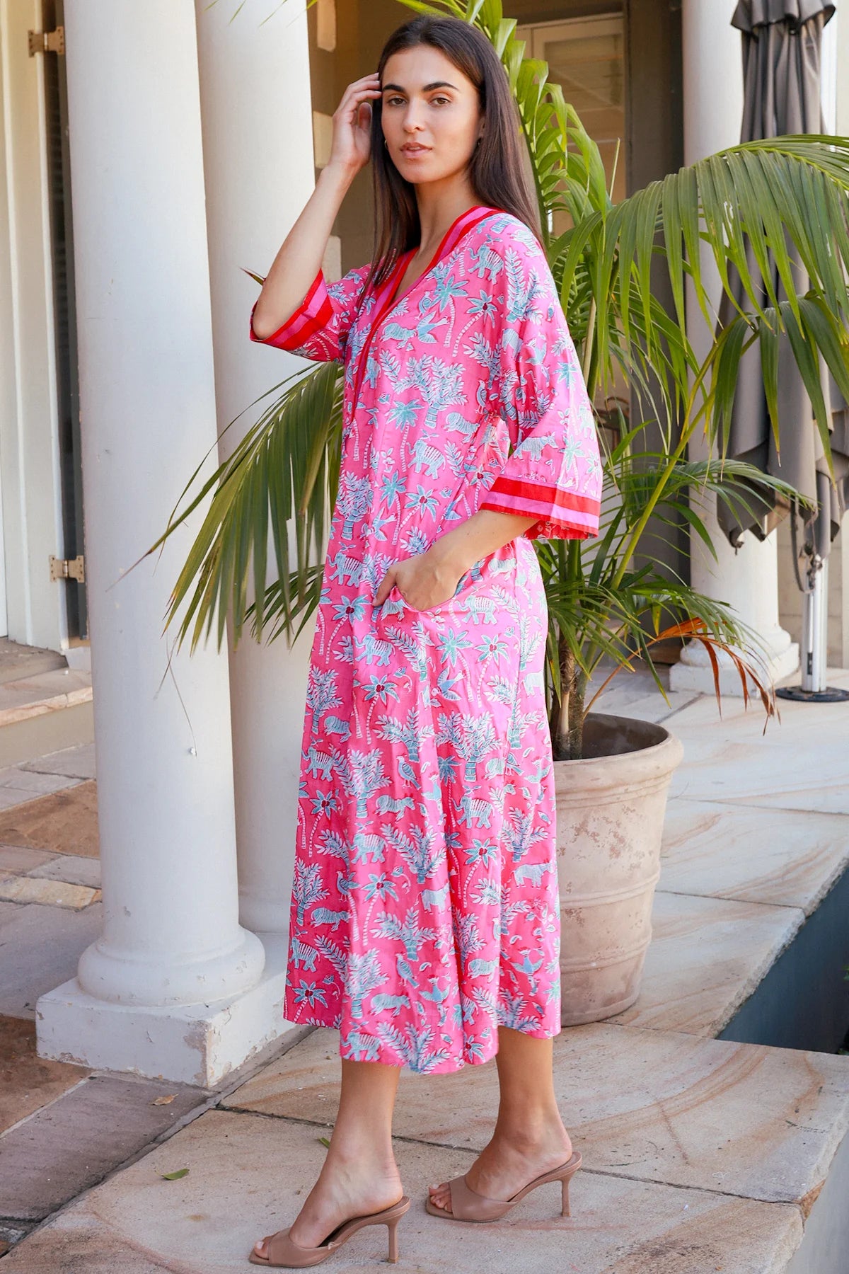 Made from beautiful soft cotton, this stylish dress comes in a fun pink, red, and blue color palette. Absolute comfort with effortless style. Grab your sunnies and you’re ready to go!