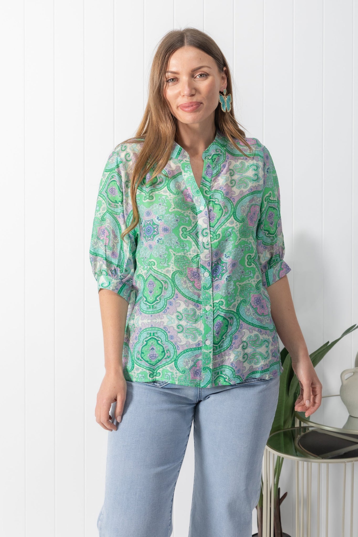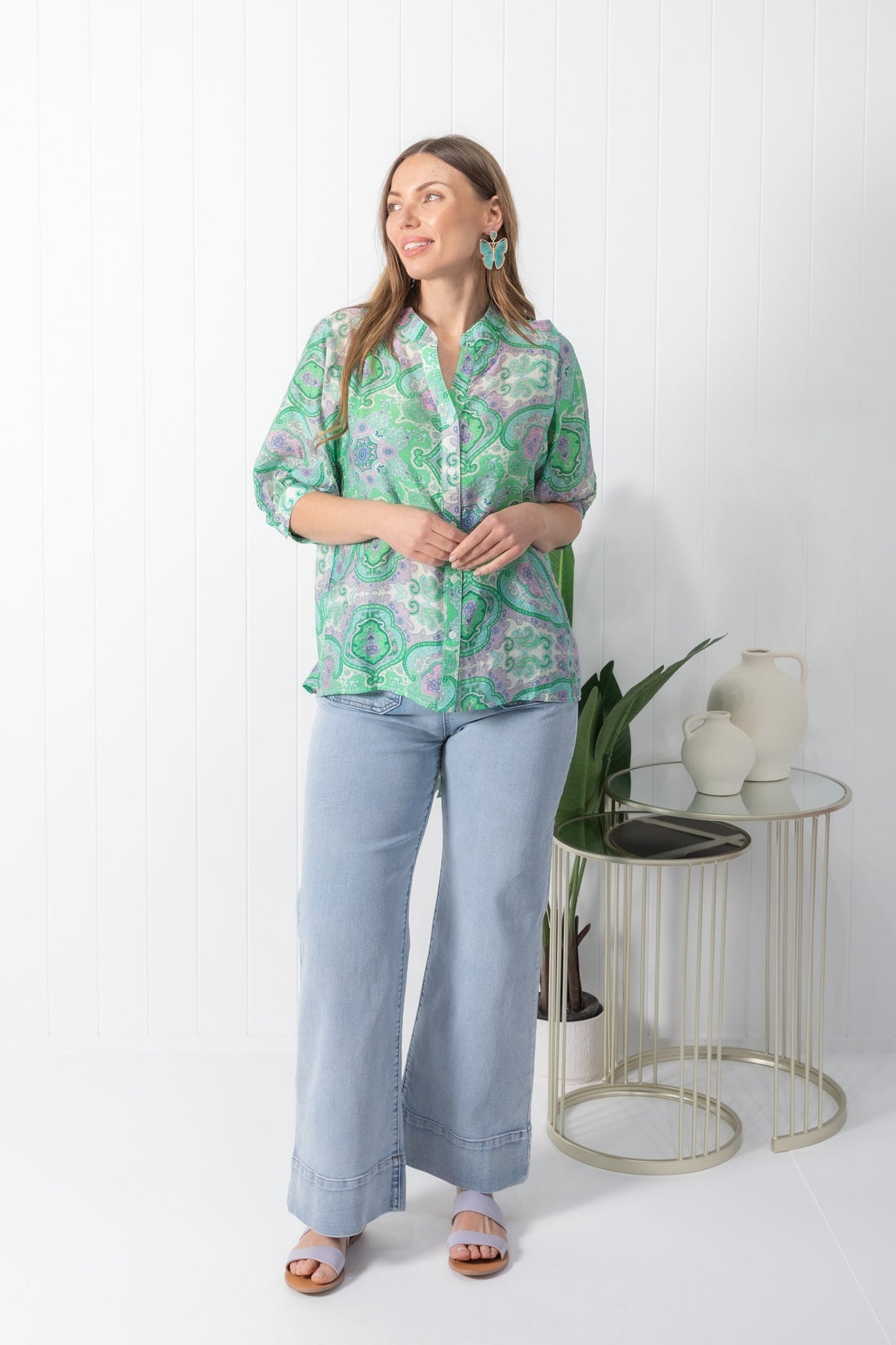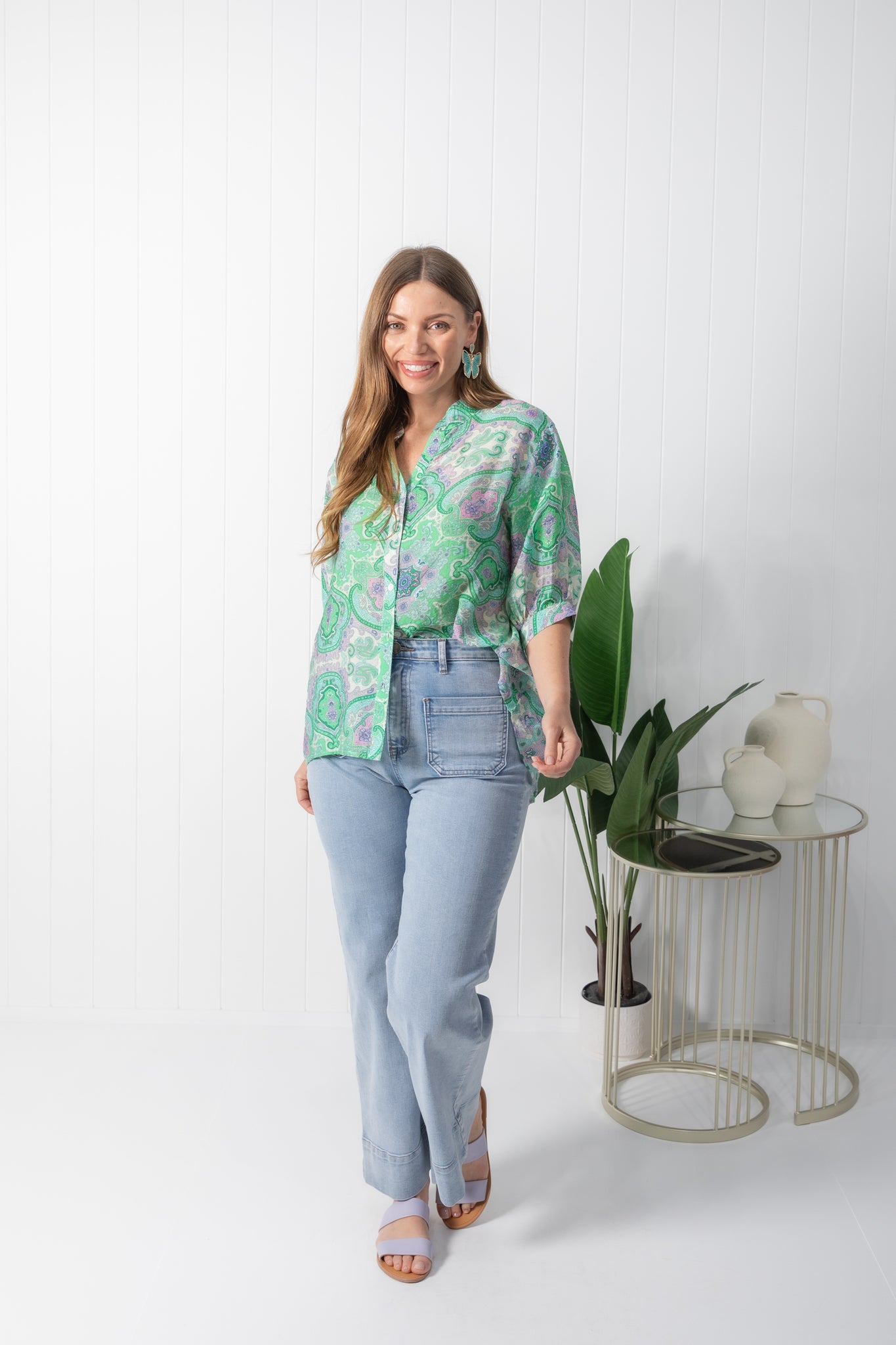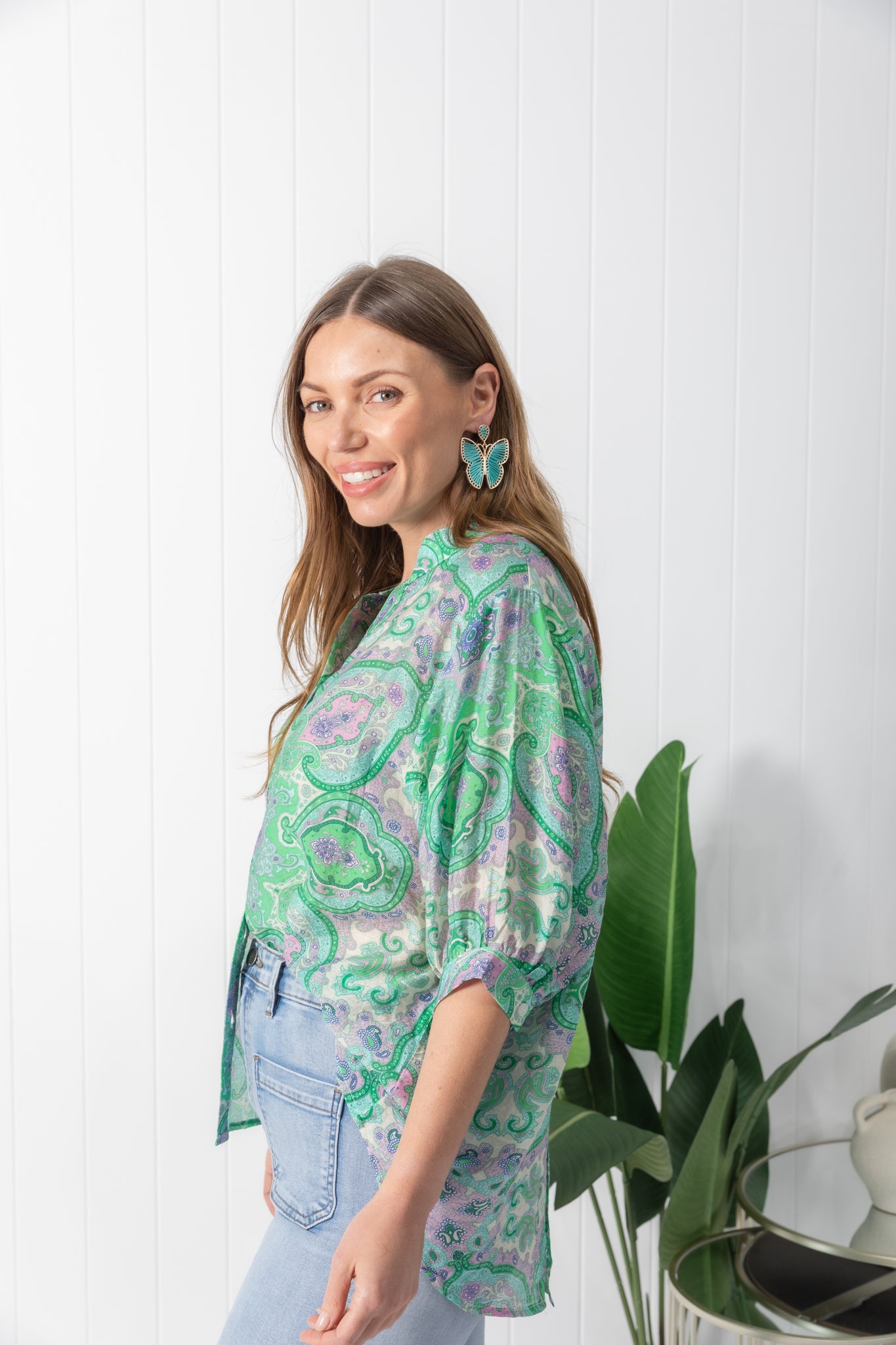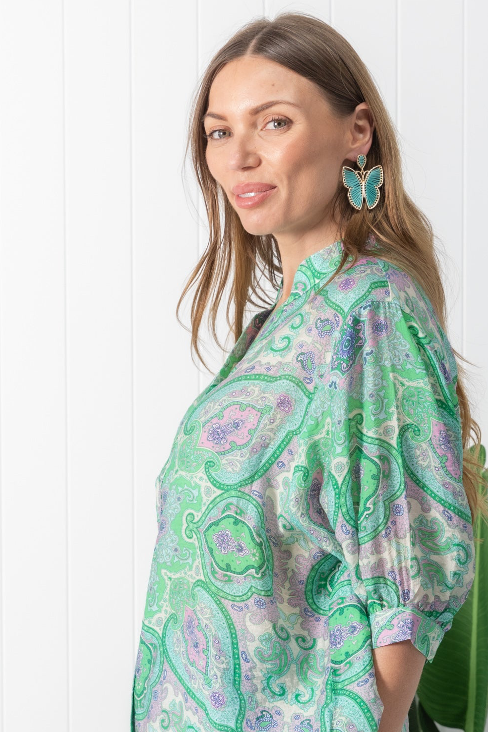Experience a chic and effortless feel with the Tilly top. Featuring a vibrant green & pink colour way in a paisley print, The cut is on point and a BEST SELLER! Covers all the bits you want to cover yet flows in all the right places.