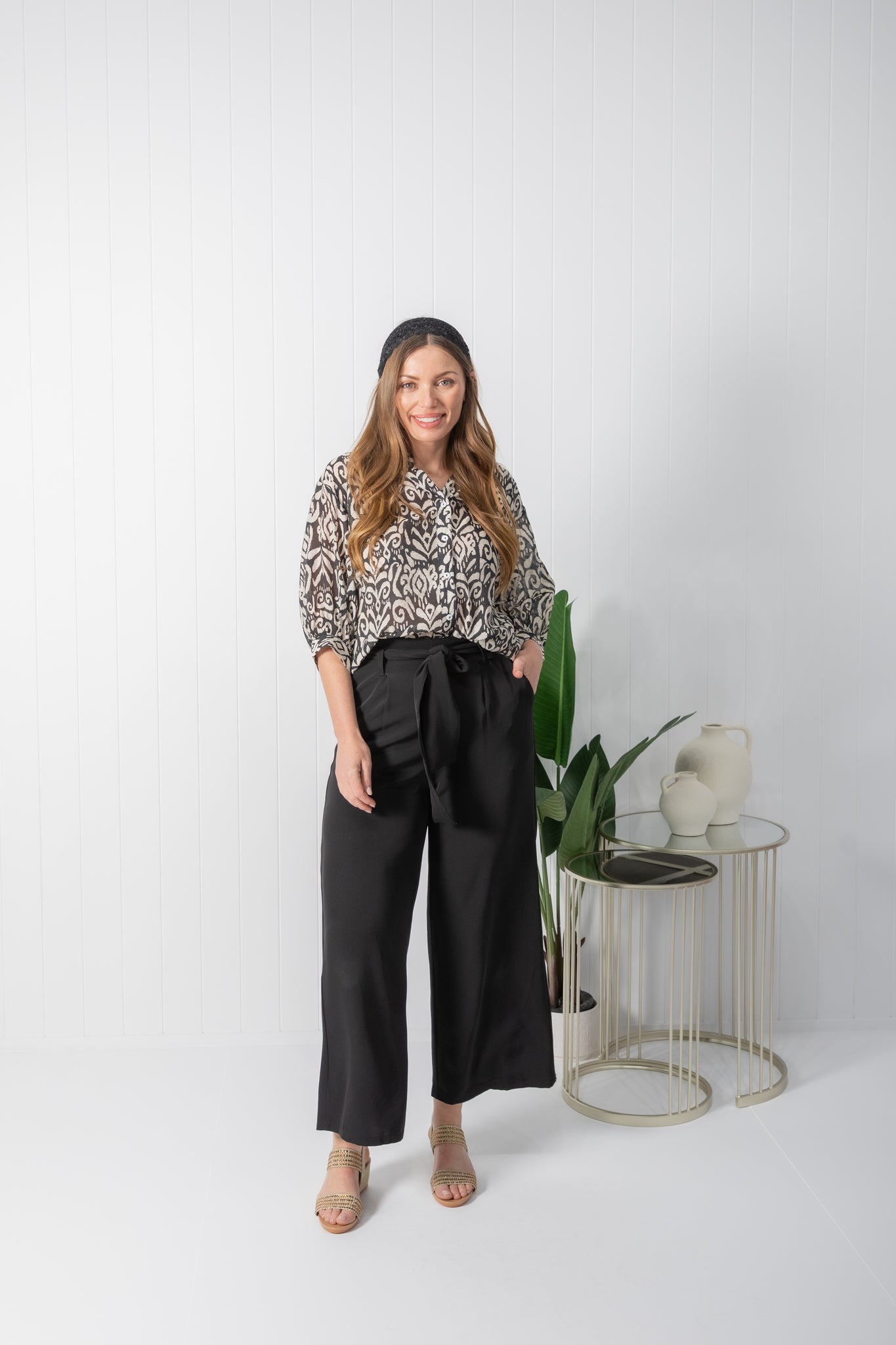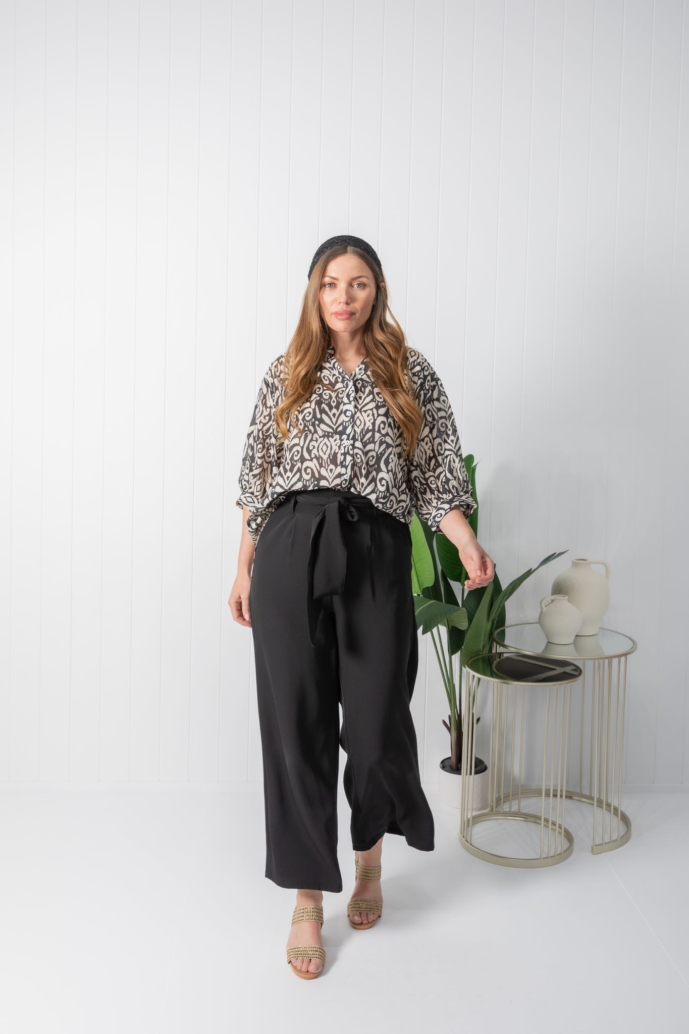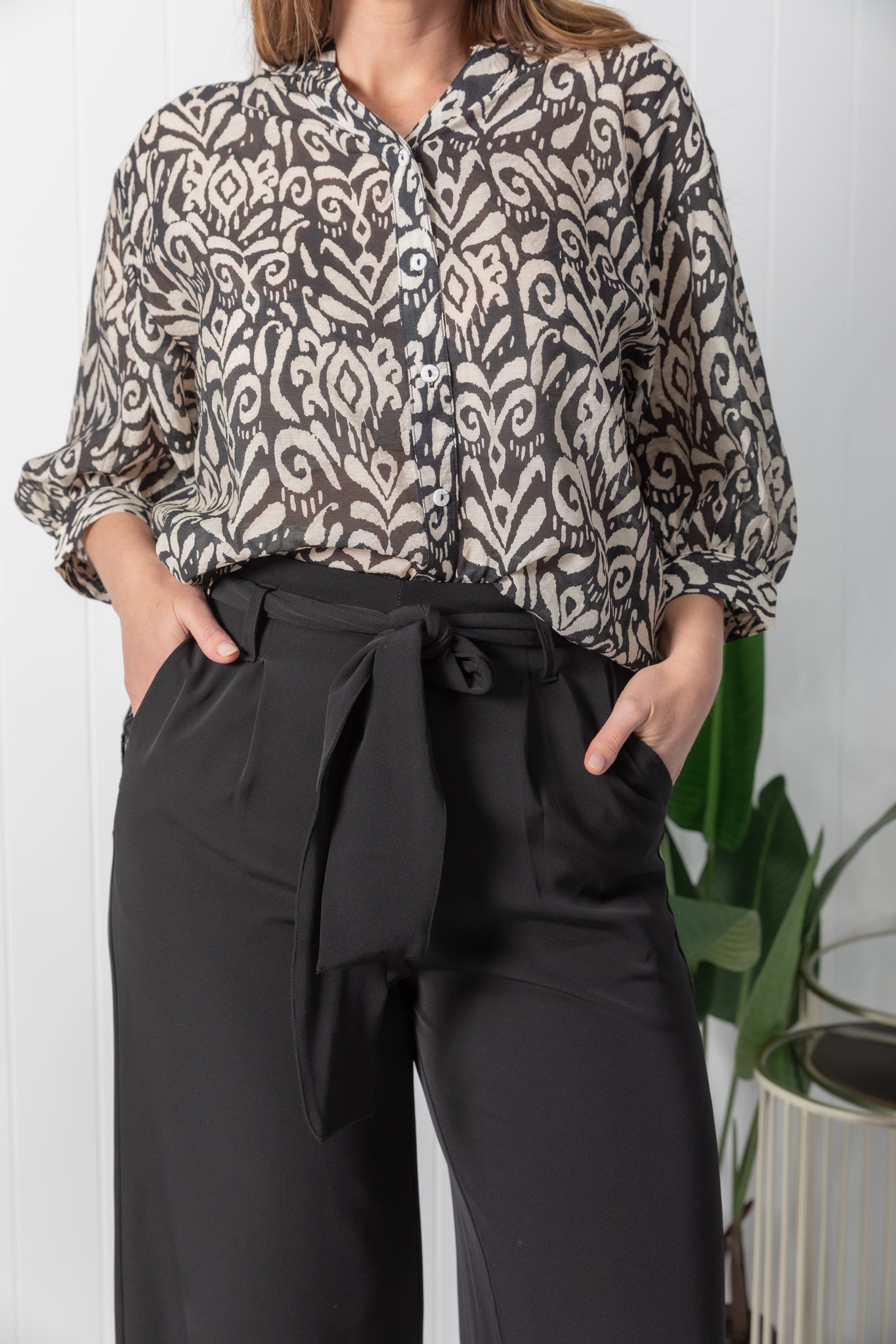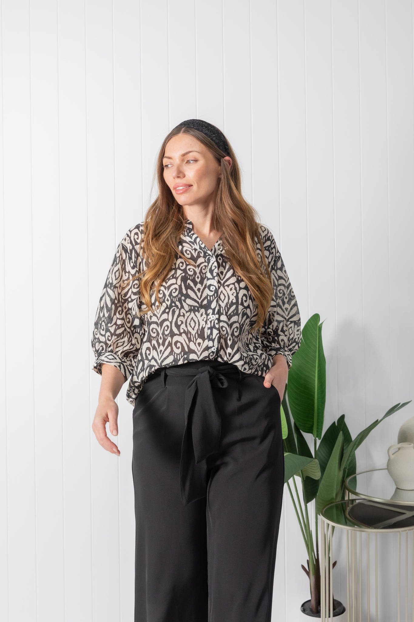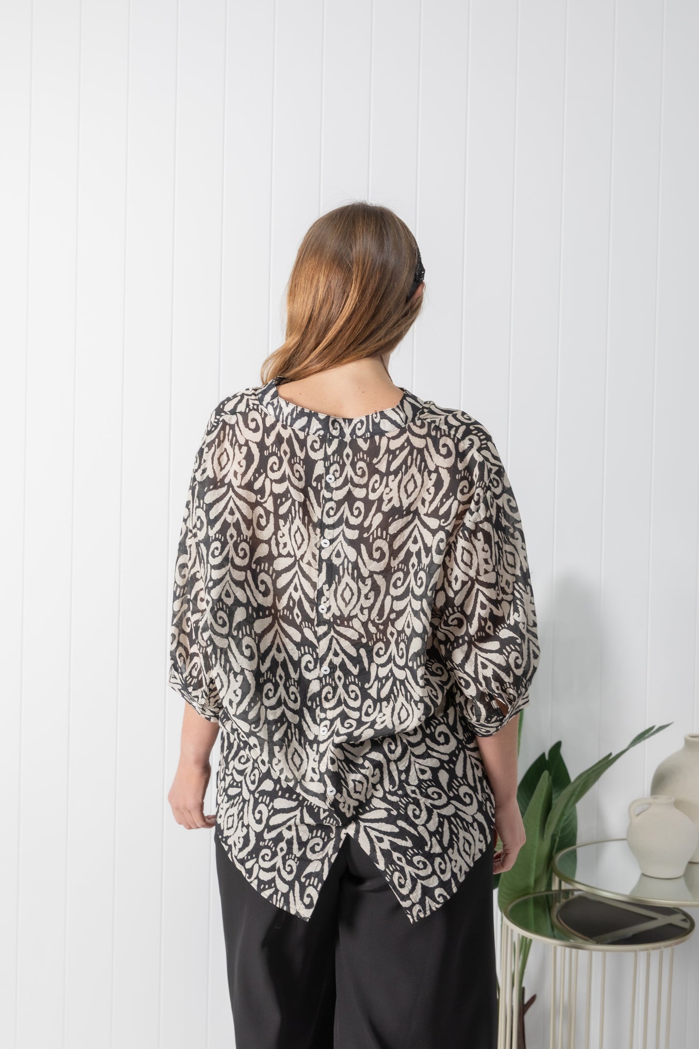 Experience a chic and effortless feel with the Tilly top. Featuring a casual print in a black & cream colour way.