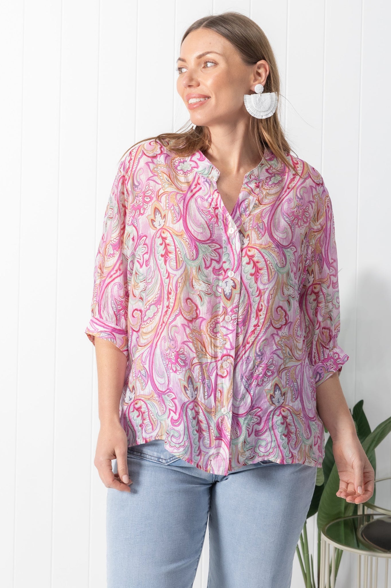 - 3/4 sleeves with button detail on cuffs